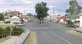 The town today includes a K-12 central school, police station, two churches, the Grace Munro Centre (a state of the art aged care facility), an agricultural supplies store, garage, hotel, sporting club and golf course, rural transaction centre (with Centrelink access), community technology centre, general store/bottle shop/newsagent/gift shop and a takeaway store that is open seven days a week. The General Store operates as a basic post service too, with the full post office closing in August 2016. Camping is possible at the camping ground with powered sites and hot shower facilities, and at a free site on the edge of town and on the river.