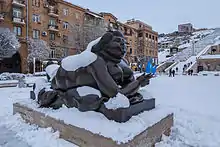 • The Cafesjian Sculpture Garden is the front gardens of the cascade where many sculptures are exhibited. Sculptures are also exhibited in the garden terrace along the massive steps and fountains ascending up from the Tamanyan street gardens.[7] With unobstructed walkways, long vistas, and formal garden areas, it has been specially designed to provide a modern setting for large-scale sculpture by many internationally recognized figures.
