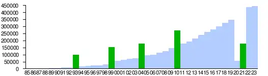 - ↑ "Pilgrims by year according to the office of pilgrims at the Cathedral of Santiago de Compostela". Archived from the original on 1 January 2010.