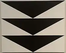 Herrera exhibited several times at the Salon des Réalités Nouvelles beginning in 1949.[21] Solo exhibitions were hosted at the Galeria Sudamericana (1956), Trabia Gallery (1963), Cisneros Gallery (1965) and Alternative Gallery (1986).[22] El Museo del Barrio in East Harlem, New York, mounted Carmen Herrera: The Black and White Paintings, 1951–1989, an exhibition of Herrera's work in 1998.[4] Latincollector held Carmen Herrera: Five Decades of Painting, a large retrospective in 2005. Latincollector presented Estructuras, the first exhibition of several of her wooden structures in 2007. A retrospective exhibition opened in July 2009 at the nonprofit IKON Gallery in Birmingham, England, and travelled to the Pfalzgalerie Museum in Kaiserslautern, Germany in 2010.[23]