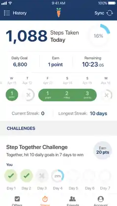 Carrot Rewards was a mobile app for residents of three Canadian provinces and one territory, allowing users to complete health questionnaires and track steps in exchange for rewards points.[1] The app was developed by Toronto-based Carrot Insights, a certified B corporation founded in 2015.[2] The app was first launched in British Columbia during March 2016, followed by Newfoundland and Labrador during June 2016, Ontario during February 2017, and the Northwest Territories only weeks before the app discontinued service in June 2019.[3] Users could choose during sign-up whether they want Aeroplan, Scene, Petro-Points, More Rewards or Drop rewards points.[4] RBC Rewards was also added as an option in June 2018.[5] Survey points were paid for by the organization which created the survey and step points were paid for by the provincial government where the user lives.[6] Carrot Rewards had also partnered with Heart & Stroke, Diabetes Canada and YMCA Canada.[7] The app was later expanded to include questionnaires and surveys on energy conservation and financial literacy.[8] In November 2018, an optional paid tier was added to the Carrot app, allowing users to receive bonus points for completing their goals.[9] Carrot shut down on June 19, 2019, after their "funds eventually ran out and [they] could no longer be in business".[10] However, in December 2019, social media accounts were updated with statuses saying “stay tuned”. In January 2020, Optimity bought Carrot Rewards and relaunched the health app under a new model.[11]