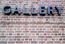 Signage in a Caslon Egyptian revival at Dulwich Picture Gallery. The 'G' in the original typeface had a spur at bottom right down to the baseline.[14]