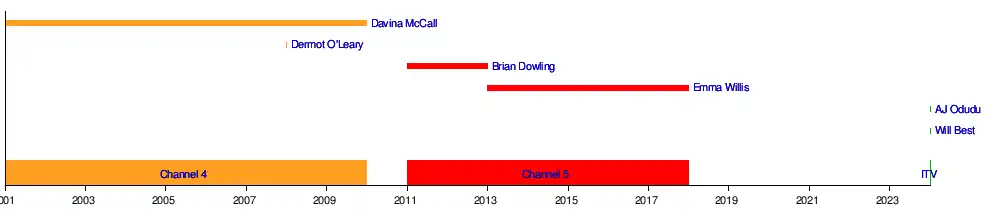 Timeline of hosts and narrator