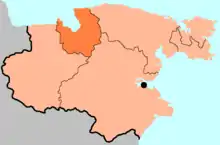 Chukotka (Russian: Чуко́тка, romanized: Chukotka; Chukchi: Чукоткакэн автономныкэн округ, Chukotkakėn avtonomnykėn okrug), officially the Chukotka Autonomous Okrug,[note 1] is the easternmost federal subject of Russia. It is an autonomous okrug situated in the Russian Far East, and shares a border with the Republic of Sakha to the west, Magadan Oblast to the south-west, and Kamchatka Krai to the south, as well as a maritime border on the Bering Strait with the U.S. state of Alaska to the east. Anadyr is the largest town and the capital, and the easternmost settlement to have town status in Russia.