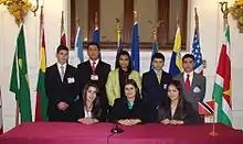 Participants of Colegio de la Preciosa Sangre in the 2011 edition of MOEA (Model of the Organization of American States), of the University of Chile's Institute of Public Affairs