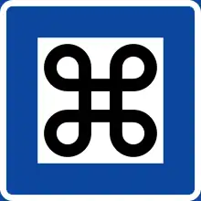 The ⌘ symbol came into the Macintosh project at a late stage. The development team originally went for their old Apple key, but Steve Jobs found it frustrating when "apples" filled up the Mac's menus next to the key commands, because he felt that this was an over-use of the company logo.[2] He then opted for a different key symbol. With only a few days left before deadline, the team's bitmap artist Susan Kare started researching for the Apple logo's successor. She was browsing through a symbol dictionary when she came across the cloverleaf-like symbol, commonly used in Nordic countries as an indicator of cultural locations and places of interest[1][6] (it is the official road sign for tourist attraction in Denmark, Finland,[7] Iceland,[8] Norway,[9] and Sweden,[10] and the computer key has often been called Fornminne—ancient monument—by Swedish Mac users[11] and Seværdighedstegn—landmark signs—by Danish users). When she showed it to the rest of the team, everyone liked it, and so it became the symbol of the 1984 Macintosh command key.[12][6] Susan Kare states that she has since been told that the symbol was picked for its Scandinavian usage due to its resembling the shape of a square castle with round corner towers as seen from above looking down, notably Borgholm Castle.[6] However, the symbol is used in many places in Scandinavian history, for example on a 5th century picture stone from Gotland,[13] and first usage of the shape as a sign for a place of interest was suggested by the Finnish Local Heritage Federation in the 1950s.[14]