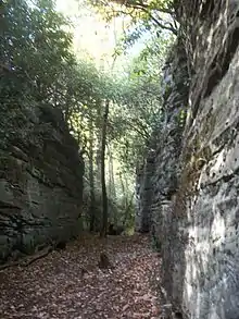 Much of Coopers Rock was originally developed by projects of the Civilian Conservation Corps from 1936-1942. Many of these structures, including durable rustic picnic shelters made of American chestnut, exist today and are listed on the National Register of Historic Places.[2]