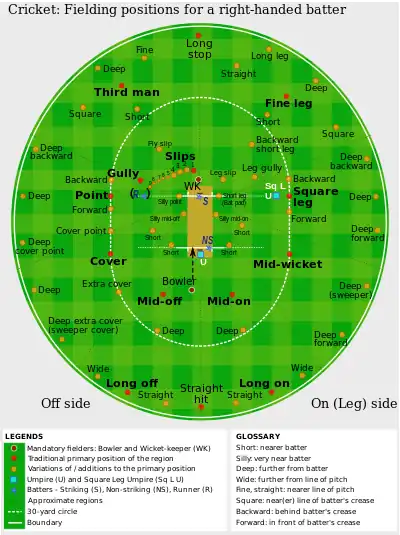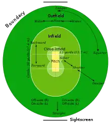 - ↑ "Law 19 – Boundaries". Laws of Cricket. MCC. Retrieved 7 July 2017.