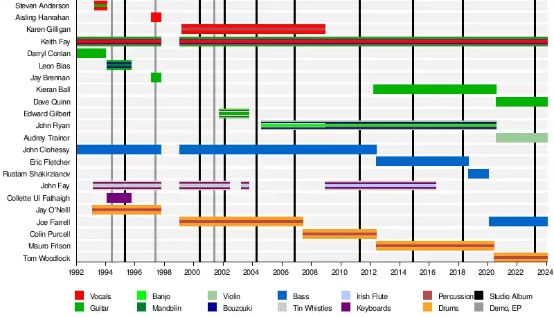 • John (O'Fathaigh) Fay – tin whistles, Irish flute, keyboards, percussion (1993–1997, 1999–2002, 2003, 2008–2016)