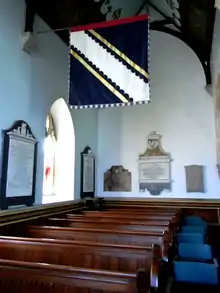 Fortescue banner of arms in the Fortescue Chapel of St Paul's Church, Filleigh, Devon.