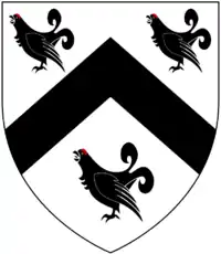 Badcocke Sable, on a pale argent three cocks gules Shebbear