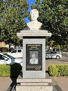 In late 2008, the Rotary Club of Griffith erected a memorial in Banna Avenue, the main street of Griffith, to honour the 30th anniversary of Mackay's murder.[17][28] The statue of Mackay itself is a white marble bust with a plaque inscribed with "All that is necessary for the triumph of evil is for good men to do nothing."