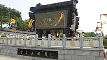 Other scholars studied the similarities between local and Japanese shamanisms.[20] The Manchukuo generally promoted a racially centered spiritual revival, that is an ethnic religion for each of the races inhabiting Manchuria.[22] For example, under the suggestions of Ogasawara Shozo that the Mongols "need(ed) a new religion, specifically a new god" they promoted the worship of Genghis Khan that continues today in northern China. The Shinto shrine of Kalgan (now Zhangjiakou, Hebei) incorporated Genghis Khan worship and was opened to local Mongols.[23]