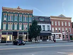 Downtown Lawrenceburg Historic District is a national historic district located at Lawrenceburg, Dearborn County, Indiana. The district encompasses 257 contributing buildings and 2 contributing objects in the central business district and surrounding residential sections of Lawrenceburg. The district developed between about 1815 and 1900, and includes notable examples of Late Victorian, Federal, and Greek Revival style architecture. Located in the district are the separately listed Dearborn County Courthouse and Hamline Chapel United Methodist Church. Other notable buildings include the Trade and Industrial Building (1881), Lawrenceburg Theater (1875), Jesse Hunt Hotel (1818), the birthplaces of James B. Eads and Louis Skidmore.[2]