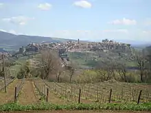 The vast majority of "true" Drupeggio plantings are found in the Umbria region where it can be an important blending variety in the wines of Orvieto. Here Drupeggio, along with Grechetto and Malvasia Toscana, can make up to 20-30% of the blend along with Trebbiano (50-65%) and Verdello (15-25%).[3] Outside of Umbria, it is found in the provinces of Firenze, Grosseto and Pistoia where it is permitted to be blended with Malvasia and Trebbiano in several Tuscan DOCs. In the Carmignano region, up to 10% of Drupeggio is permitted to be used in the red and rosé wines of the "declassified" DOC of Barco Reale where it may be blended with Sangiovese, Cabernet Sauvignon, Canaiolo nero, Trebbiano and Cabernet Franc.[1]