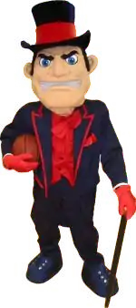 At the December 13, 2008 game versus West Virginia, Duquesne introduced its new human-figure mascot to replace the 7-foot-tall (2.1 m) character mascot. The mascot traditionally sports its black jacket with coat-tails and overbearing top-hat.