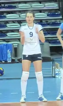 The 1.80 m (5 ft 11 in) tall sportswoman plays in the outside hitter and libero positions,[5] and has a reach of 270 cm (110 in).[1]