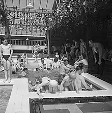 About one-third of the population lived in poverty, with the wealthy expected to give alms to assist the impotent poor.[29] Tudor law was harsh on the able-bodied poor, those physically fit but unable to find work. Those who left their parishes in order to locate work were termed vagabonds and could be subjected to punishments, often suffering whipping and being put in the stocks. This treatment was inflicted to encourage them to return to their "mother parish."[30][31]