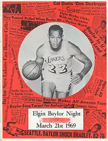 The cover of the Los Angeles Lakers program for "Elgin Baylor Night" on March 21, 1969