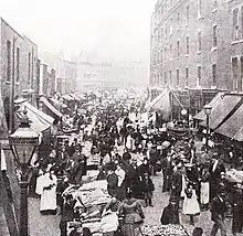 Middlesex Street, Spitalfields, c. 1890. Stride frequently resided in common lodging-houses within this district of London in the years prior to her murder.[30]