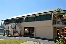 Enoggera State School celebrated its diamond jubilee (one year late) in November 1932, attended by parents and past students. The school grounds were extended by 1,821 square metres (0.450 acres) to the east in April 1935. A fete was held in October 1936 to raise funds for continued improvements to the school grounds. The committee had already provided a tennis and basketball court, and a concrete cricket wicket. By mid-1937, the committee was advocating the construction of another wing for the school. The local MLA Mr G Taylor advised that finance had been approved for this addition in November 1937. It was not completed until 31 July 1939 at a cost of £1810. The new wing (Block C) provided two more classrooms, a teacher's room with hat room and was roofed in red fibre cement slates. It was built on concrete piers and was cemented underneath. This wing was built to the northwest of the 1916 buildings, linked to existing verandas and parallel to the western boundary of the school reserve.[42][43][44][45][46][47][1]