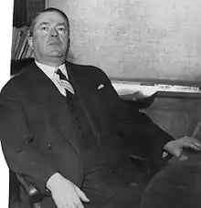 During the legal purge in Norway after World War II he managed to get his case delayed until 1950,[2] after first having been arrested between 13 May 1945 and 1946.[3] He died in 1963, and left behind a sizeable collection of weapons.[1] Parts of the collection was sold in 1993 at Christie's.[4] Money was channeled to a foundation Arkitekt Eugen Nielsens Stiftelse, which among others supported Arnfinn Moland with 50,000 kr to write the strongly Nazi-critical book Over grensen? Hjemmefrontens likvidasjoner under okkupasjonen av Norge 1940–1945.[3][5]