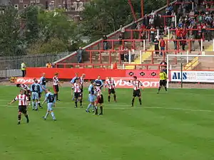 City's first team finished the 2006–07 season in fifth place, qualifying for the play-offs. After beating Oxford United on penalties in the semi-final, City met Morecambe at Wembley in the final,[28] where they lost 2–1 despite taking an early lead.[29]