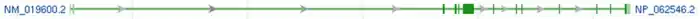The FAM214A gene is located on the negative DNA strand (see Sense (molecular biology)) of chromosome 15 between position 52,873,514 and 53,002,014; thus making the gene 97,303 base pairs (bp) long.[5][8][9] FAM214A has been previously labeled with two other aliases, known as KIAA1370 and FLJ10980.[5] The FAM214A gene is predicted to contain 12 exons which comprise the final 4231 bp mRNA transcript after transcription has occurred.[10] It is this mRNA product that is then translated into the final FAM214A protein with the help of the promoter sequence and transcription factors. The promoter for the FAM214A mRNA sequence was predicted and analyzed by the El Dorado program on Genomatix.[11] This promoter is 601 base pairs long and spans a portion of the 5' UTR.[11]