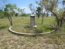 Significant componentsartefact field, grave surrounds/railings, burial/grave, dam/reservoir, tank stand, pathway/walkway, slab/s - concrete, wall/s - stockade/pallisade, tank - water, building foundations/ruins, artefact field, track, grave marker, well, flagpole/flagstaff, grotto, building foundations/ruins, tank - water, pump, hut/shack, cemetery, pathway/walkway, slab/s - concrete, tank - storage