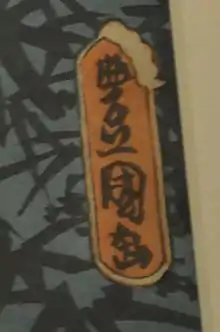 The print dates to 1852 and was therefore done when Kunisada was 66, before his work declined into what has been described as "gaudy and ostentatious" use of colour.[25] Critics tend to agree that Kunisada's later works suffered in quality "because of over-production and lowering of artistic standards."[26]