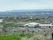 View looking north from the highest point in Fernhill over the local community centre, with Rutherglen and Glasgow beyond