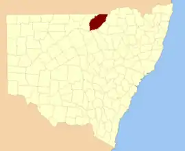 Finch County is one of the 141 Cadastral divisions of New South Wales. It is bounded by the Narran River in the west, the Barwon River to the south and east, and the Queensland border to the north. It includes Lightning Ridge.