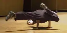 • Buddha - Similar to Air Turtles except that the knees are kept locked together and behind the arms, shins parallel to the floor, back as parallel to the floor as possible. Bboy Waka of Headhunterz was one of the first to perform Buddhas in his sets.