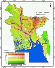 16. 1 2 Uddin, Kabir; Matin, Mir A. (2021-10-01). "Potential flood hazard zonation and flood shelter suitability mapping for disaster risk mitigation in Bangladesh using geospatial technology". Progress in Disaster Science. 11: 100185. doi:10.1016/j.pdisas.2021.100185. ISSN 2590-0617.
