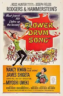 Flower Drum Song is a 1961 American musical film directed by Henry Koster, adapted from the 1958 Broadway musical Flower Drum Song, written by the composer Richard Rodgers and the lyricist/librettist Oscar Hammerstein II, in turn based on the 1957 novel of the same name by the Chinese American author Chin Yang Lee. The film stars Nancy Kwan, James Shigeta, Miyoshi Umeki, Jack Soo, Benson Fong and Juanita Hall. It was nominated for five Academy Awards and two Golden Globe Awards, including Best Motion Picture – Musical or Comedy.