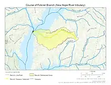 Course and Watershed of Folkner Branch (New Hope River tributary)