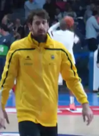 Fotis Lampropoulos playing with Apollon Patras against Trikala Aries.