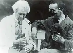 Gaston Julia (right), with Gustav Herglotz and two dogs