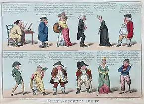 As at the French court, where Marie Antoinette was setting the fashion for a "pastoral" style of clothing, women were wearing broad-brimmed hats decorated with ribbons. This is what Eliza de Feuillide, Jane Austen's cousin who is familiar with the receptions at Versailles, explains to Phylly Walter, another cousin, when she inquires after the latest fashions in France.[24] This same Eliza complains in turn about the stiff fashions still being worn at the Court of St. James's where, she says, "she had to stand for two hours on end wearing a pannier dress whose weight was not negligible".[24] At the same time as dresses with hoop skirts were becoming unfashionable, heavy brocade and embroidered silk fabrics too were disappearing, replaced by muslin dresses worn with petticoats to give them volume. This volume, and the vaporous appearance it gave these muslin dresses, were considered to give women a more natural silhouette. This natural fashion soon also became much more revealing, to an extent bordering on scandalous, as Eliza de Feuillide gleefully noted during a stay in Bath in 1798. For it was Bath, and still more London, that was the fashion leader.