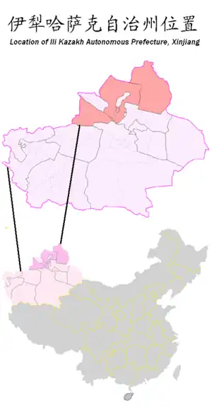 The Ghulja, Gulja,[3][4] or Yining incident (Chinese: 伊寧事件, Yīníng Shìjiàn), also referred to as the Ghulja Massacre,[5] was the culmination of the Ghulja protests of 1997, a series of demonstrations[6] in the city of Yining—known as Ghulja in Uyghur—in the Xinjiang autonomous region of China.