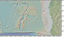 The Gorda Ridge (41°36'19.6"N 127°22'03.1"W), aka Gorda Ridges tectonic spreading center, is located roughly 200 kilometres (120 mi) off the northern coast of California and southern Oregon. Running NE – SW it is roughly 300 kilometres (190 mi) in length.[1] The ridge is broken into three segments;[2] the northern ridge, central ridge, and the southern ridge, which contains the Escanaba Trough.