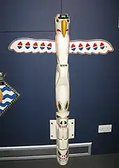 The submarine was presented with a totem pole by the Cowichan Tribes in 1945, which was stolen during the 1950s when the boat was visiting Halifax, Canada. The pole was fitted to the front of the bridge fin when the submarine was in harbour.[2]