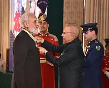 ![]() Dr. Arif Alvi awarding Hilal-i-Imtiaz to Hakeem Rizwan Hafeez Malik. | |