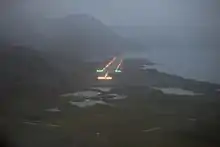 Honningsvåg Airport (Norwegian: Honningsvåg lufthavn; IATA: HVG, ICAO: ENHV) is a regional airport serving Honningsvåg in Nordkapp, Norway. The airport is located at Valan, on the south side of Skipsfjorden, 4 kilometers (2+1⁄2 miles) north of the town, and 31 km (19+1⁄2 mi) from the North Cape. The airport has a 880-by-30-meter (2,887 by 98 ft) asphalt runway which is operated by the state-owned Avinor. Flights are operated by Widerøe to Tromsø with connecting flights to Oslo. The airline also fly to other communities within Finnmark, who serve the airport with Dash 8-100 and Q200 aircraft. The airport handled 13,487 passengers in 2014.