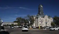 The Hood County Courthouse Historic District in Granbury, Hood County, Texas encompasses 12 acres of land. The principal building in and the focal point of the district is the historic Hood County Courthouse built in 1890–1891. Other major buildings include the 1885 Hood County Jailhouse, the 1885 First National Bank Building, the 1891 building which formerly housed the Hood County News, the 1893 Aston-Landers Saloon Building,[2] the 1893 Nutt Brothers Building, and the 1886 Granbury Opea House. On June 5, 1974, the district was added to the National Register of Historic Places. The nomination form called it "one of the most complete nineteenth century courthouse squares in Texas."[3][4] The district is also recognized as a State Antiquities Landmark and includes several Recorded Texas Historic Landmarks.