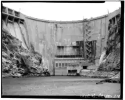 The dam is 660 feet (200 m) long, 300 feet (91 m) high and was built between 1924 and 1927. The dam includes three conventional hydroelectric generating units totaling 32 megawatts (MW) and a pumped-storage unit with a capacity of 97 MW.