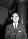 After the Second Sino-Japanese War, Huang returned to Taiwan as a major general.[3] He was very prominent and was able to participate in Legislative Yuan elections.[4] In 1950, Huang was elected Vice-President of the Legislative Yuan. On 24 February 1961, Chang Tao-fan resigned as president, and as a result Huang became president. He held the post for 11 years, when in 1972, he resigned due to health issues.[5]