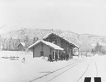 Hvalstad was along with Asker Station the only stations to be opened along with the Drammen Line on 8 October 1872.[1] The first station building was a simple wooden structure designed by Georg Andreas Bull. It was a stable design, which was seen on several low-traffic stations along the Randsfjorden Line, the Drammen Line and the Jæren Line.[2] Near the station there was a wooden viaduct, the 176-meter (577 ft) Hvalstad Viaduct. It was the largest of its kind in Northern Europe and became a tourist attraction.[3] The station became the natural center for the area and soon both residences and shops.[4]