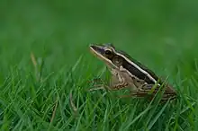 Hylarana tytleri is a frog species in the family Ranidae. It is found in eastern and northeastern India, Myanmar, Bangladesh, and southern Nepal, and possibly at lower elevations in Bhutan.[2][3] It was formerly placed in Rana, and included in the common green frog (H. erythraea). It is probably a close relative of that species nonetheless, and thus placed in the revalidated genus Hylarana, of which H. erythraea is the type species.[4] Common name Theobald's ranid frog has been coined for it, although common names for Indian frogs previously identified as Rana erythraea include yellow-striped frog, leaf frog, and leaping frog.[3]