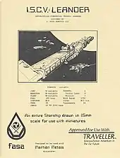 I.S.C.V.: Leander was written by L. Ross Babcock III, and was published in 1981 by FASA as five large map sheets, a scenario sheet, and an outer folder.[2] Leander was the third in a series of deck plans from FASA that were approved for Traveller.[1]